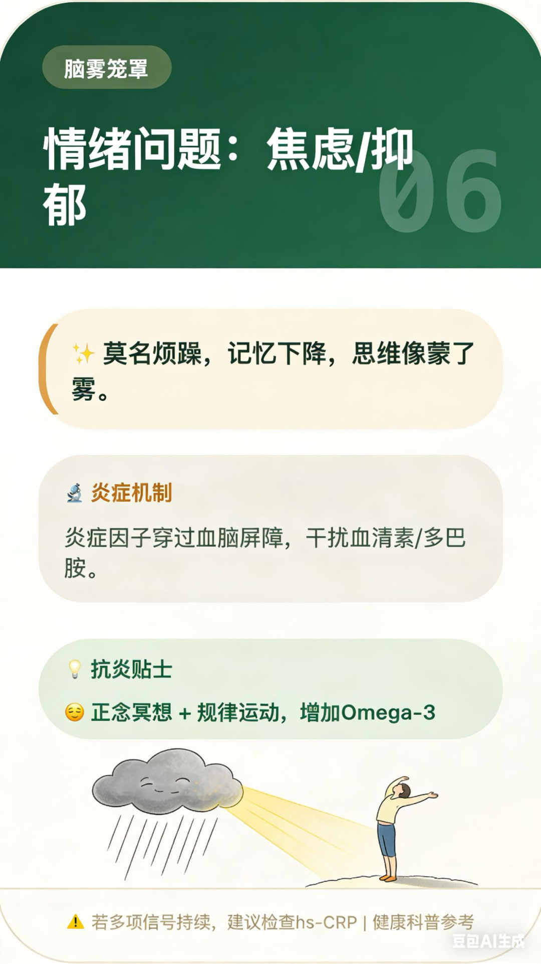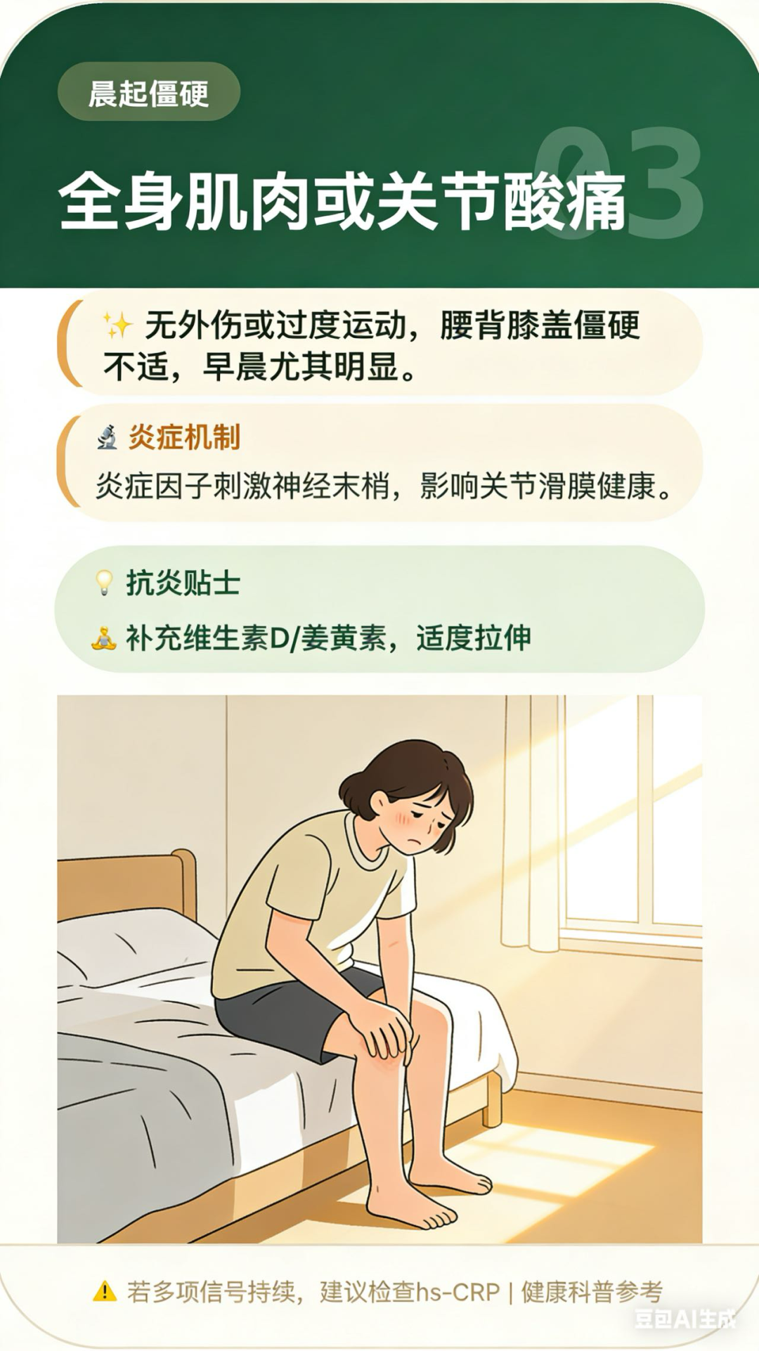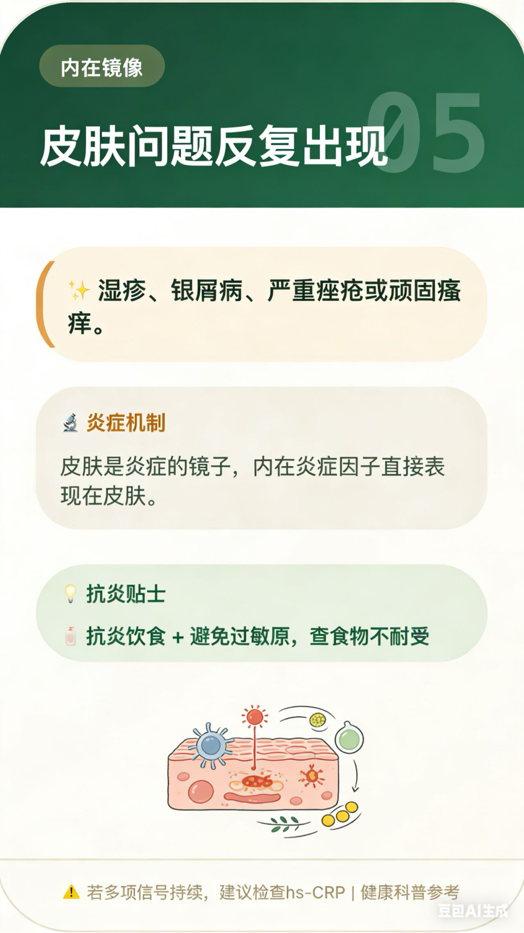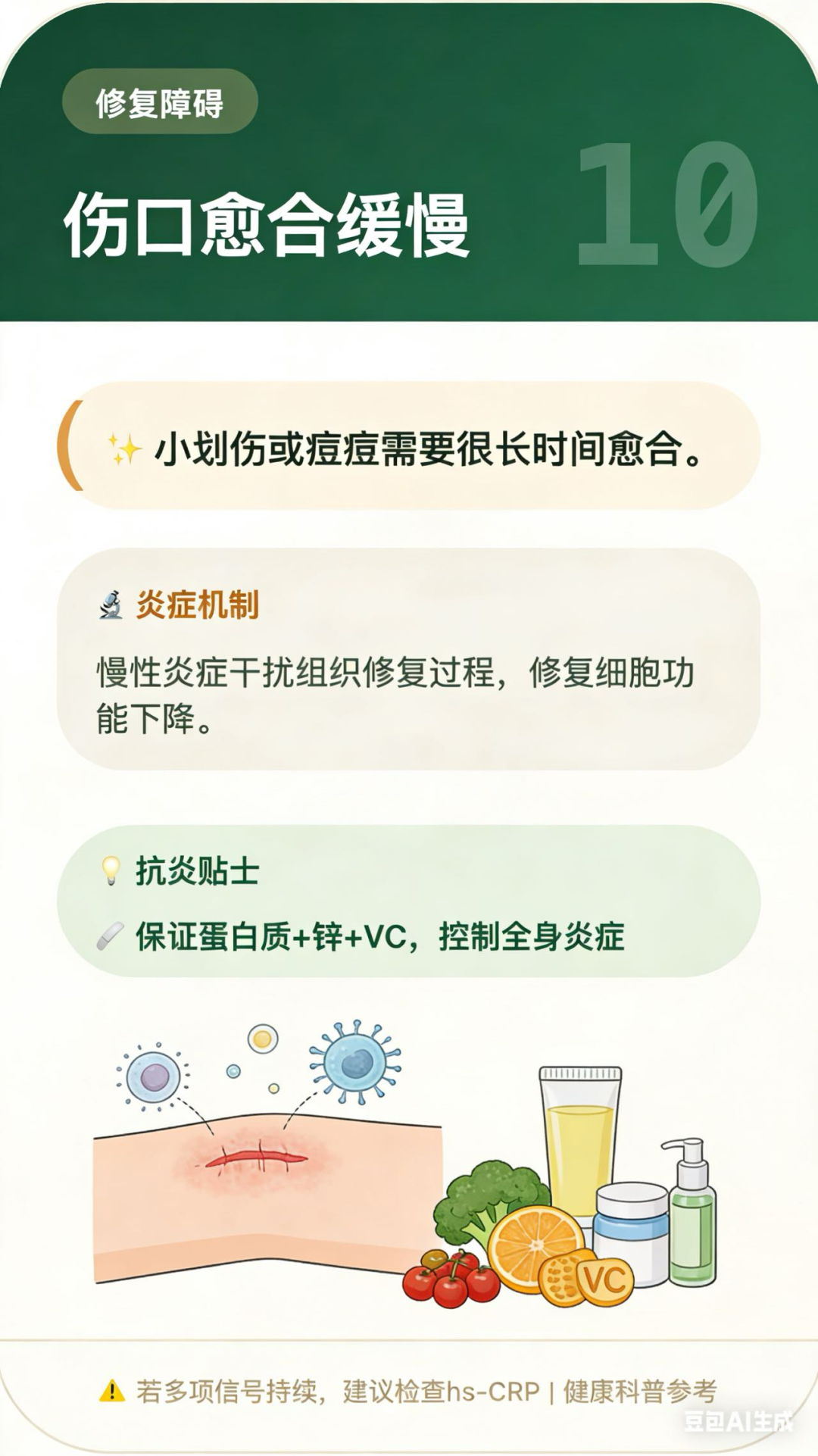 这些信号也可能是甲状腺功能减退、贫血、糖尿病、自身免疫病等其他疾病的表现。不要自行诊断单纯靠“抗炎饮食”而延误正规治疗,建议先去医院做基础检查。