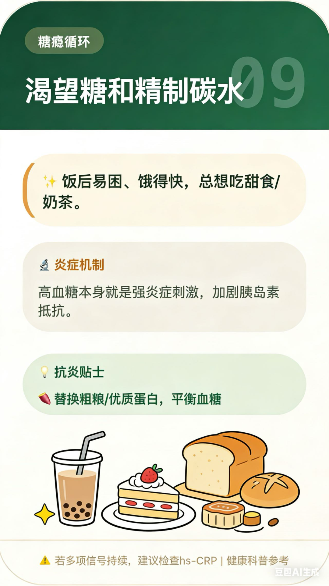 ⬇️减少:精制糖、精白米面、反式脂肪(油炸食品)、加工肉制品、过量酒精。
